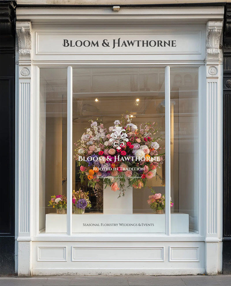 Bloom & Hawthorne draws on the quiet grandeur of estates near Althorp, shaping a heritage-led florist identity grounded in tradition and craftsmanship. The bespoke floral crest and timeless serif typography lend a sense of permanence and refinement, giving the brand an established, confident presence from day one.