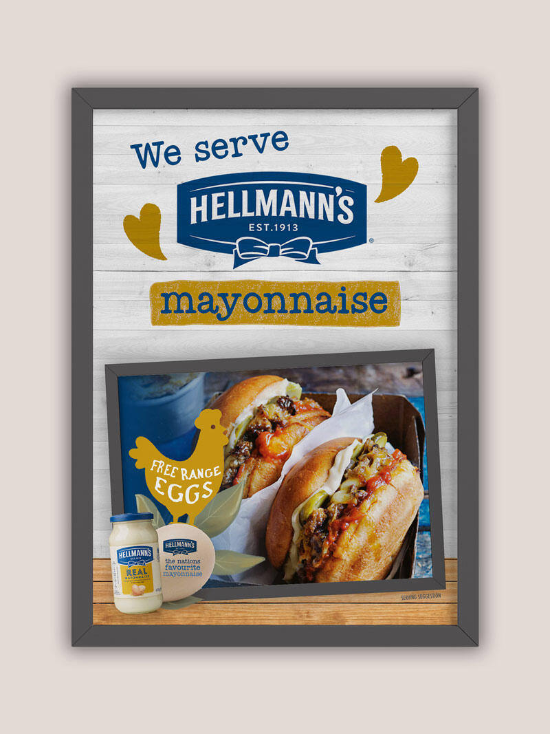 A UK trade-led campaign supporting Hellmann’s free-range commitment across the catering industry. I developed the free-range logo and accompanying B2B materials, with considered front-of-house applications to extend the message into hospitality environments.