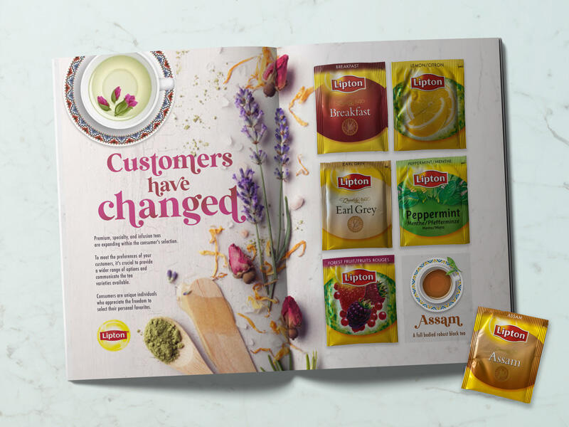 A trade project supporting Lipton’s presence at the Restaurant Show, including promotional packs and sample giveaways. The work combined research-led presentation design with a collection of art-directed tea photography, focusing on origin, ritual and atmosphere. The aim was to elevate tea within the out-of-home offer through considered, craft-led design.